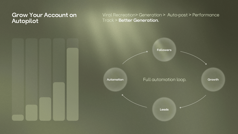 Ribbi helps you recreate viral content, schedule posts, and monitor performance in one click, fully automating steady follower growth for your account